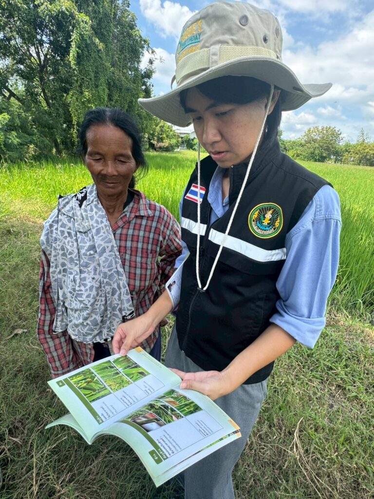 วันที่ ๑๗ ตุลาคม ๒๕๖๘ นางสาวสิรยา เรืองศรี เกษตรอำเภอหนองแค มอบหมายให้ นางสาวเกษราภรณ์ เข็มขาว นักวิชาการส่งเสริมการเกษตรชำนาญการพิเศษ นางสาวฐิติมา ตรีโลเกศ นักวิชาการส่งเสริมการเกษตรปฏิบัติการ และนางสาววิลาสินี เรืองสุข นักวิชาการส่งเสริมการเกษตรปฏิบัติการ สำนักงานเกษตรอำเภอหนองแค ลงพื้นที่ติดตามสถานการณ์การเพาะปลูกพืชในพื้นที่ตำบลโคกตูม และตรวจสอบกิจกรรมเกษตรที่แจ้งขึ้นทะเบียน/ปรับปรุงทะเบียนเกษตรกร ซึ่งได้ให้แนะนำการขึ้นทะเบียนและปรับปรุงทะเบียนเกษตรกร ปี ๒๕๖๘ ให้กับเกษตรกร พร้อมทั้งแจ้งเตือนการระบาดของโรค – แมลงศัตรูพืช ณ หมู่ที่ ๑ ตำบลโคกตูม อำเภอหนองแค จังหวัดสระบุรี