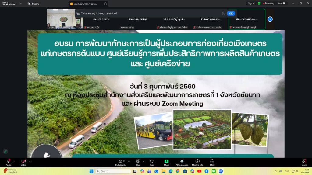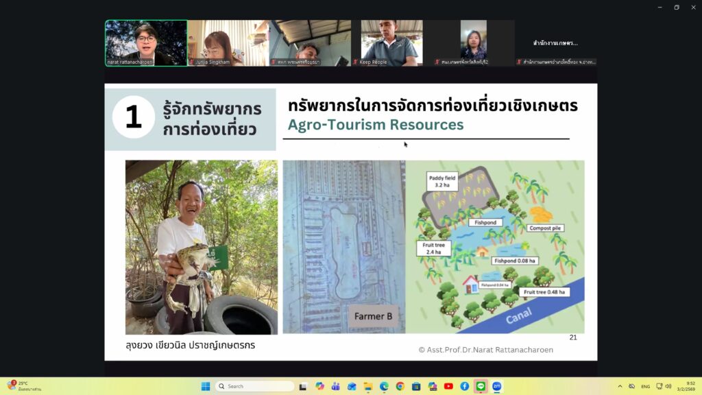 วันที่ 3 กุมภาพันธ์ 2569 นางสาวอุษา จุลวรรณ เกษตรอำเภอหนองแซง มอบหมายให้ นายต่อพงษ์ วิมุกตะลพนักวิชาการส่งเสริมการเกษตรชำนาญการ เข้าร่วมอบรมการพัฒนาทักษะการเป็นผู้ประกอบการท่องเที่ยวเชิงเกษตรแก่เกษตรกรต้นแบบ ศูนย์เรียนรู้การเพิ่มประสิทธิภาพการผลิตสินค้าเกษตร และศูนย์เครือข่าย ผ่าน Application Zoom โดยมีวัตถุประสงค์เพื่อพัฒนาศักยภาพศูนย์เรียนรู้การเพิ่มประสิทธิภาพการผลิตสินค้าเกษตร เพื่อรับรองการท่องเที่ยวเชิงเกษตรและเชื่อมโยงเส้นทางท่องเที่ยวกับแหล่งอาหารในชุมชน เป็นการสร้างช่องทางการประชาสัมพันธ์ให้เป็นที่รู้จัก เพิ่มจำนวนผู้เข้าใช้บริการ และเสริมสร้างรายได้ให้กับ ศพก. ณ สำนักงานเกษตรอำเภอหนองแซง จังหวัดสระบุรี