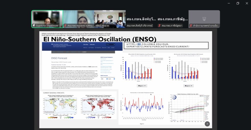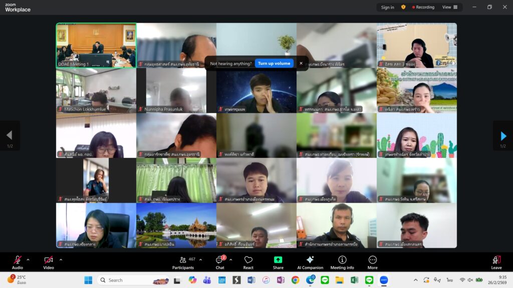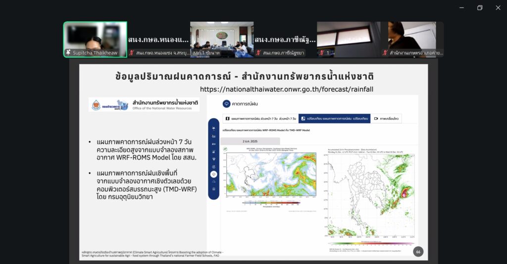 วันที่ 26 กุมภาพันธ์ 2569 นางสาวอุษา จุลวรรณ เกษตรอำเภอหนองแซง มอบหมายให้ นางสาวกรรณิการ์ ศรีแก้วตุง นักวิชาการส่งเสริมการเกษตรปฏิบัติการ สำนักงานเกษตรอำเภอหนองแซง เข้าร่วมสัมนาขับเคลื่อนการใช้แผนที่เกษตรเพื่อการบริหารจัดการเชิงรุก (Agri Map) ระดับเขต ประจำปีงบประมาณ พ.ศ.2569 ผ่านระบบออนไลน์ ระหว่างวันที่ 26 -27 กุมภาพันธ์ 2569 เพื่อพัฒนาเจ้าหน้าที่ในการประยุกต์ใช้ประโยชน์จากแผนที่เกษตรเพื่อการบริหารจัดการเชิงรุก (Agri Map) ในการดำเนินงานส่งเสริมการเกษตรในพื้นที่ โดยมีวิทยากรบรรยายจาก กรมพัฒนาที่ดิน และผู้เชี่ยวชาญด้านภูมิอากาศและบริหารจัดการน้ำ บริษัท สมร์ทวิสดอมเซอวิส จำกัด ร่วมบรรยายในวันแรก ณ สำนักงานเกษตรอำเภอหนองแซง จังหวัดสระบุรี
