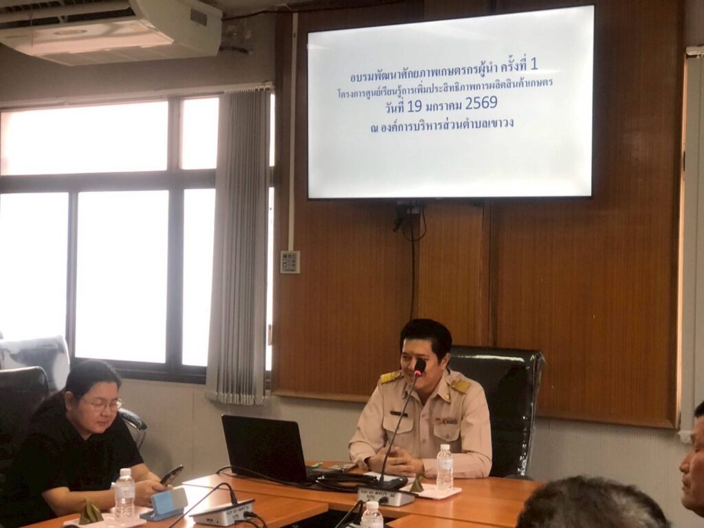 วันที่ 19 มกราคม 2569 นางสาวสิริรัตน์ หินอ่อน เกษตรอำเภอวิหารแดง รักษาราชการแทนเกษตรอำเภอพระพุทธบาท มอบหมายให้ นายประภัทร ธรรมวัตร นักวิชาการส่งเสริมการเกษตรชำนาญการ และนางสุกัญญา ยิ่งเจริญ นักวิชาการส่งเสริมการเกษตรชำนาญการ สำนักงานเกษตรอำเภอพระพุทธบาท จังหวัดสระบุรี จัดอบรมโครงการศูนย์เรียนรู้การเพิ่มประสิทธิภาพการผลิตสินค้าเกษตร กิจกรรมพัฒนาศักยภาพเกษตรกรผู้นำ ครั้งที่ 1 ณ องค์การบริหารส่วนตำบลเขาวง หมู่ที่ 2 ตำบลเขาวง อำเภอพระพุทธบาท จังหวัดสระบุรี โดยมีเป้าหมายเกษตรจำนวน 10 ราย วัตถุประสงค์เพื่อถ่ายทอดความรู้ด้านการเกษตร และพัฒนาศักยภาพแก่เกษตรกรผู้นำ