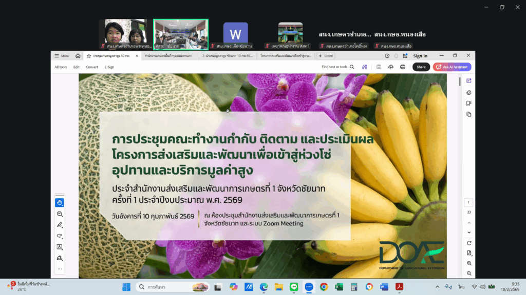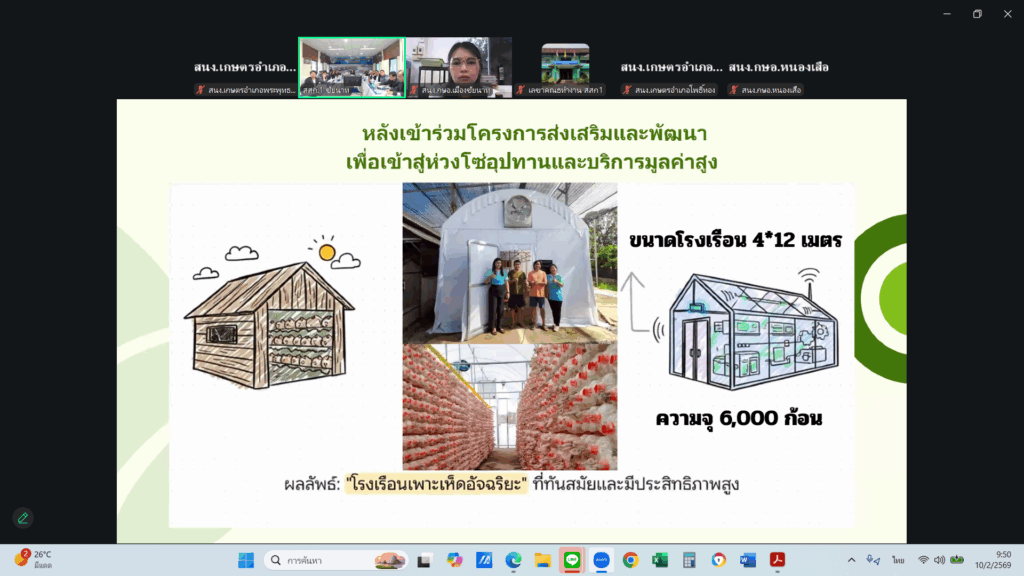 วันที่ 10 กุมภาพันธ์ 2569 นางสาวสิริรัตน์ หินอ่อน เกษตรอำเภอวิหารแดง รักษาราชการแทน เกษตรอำเภอพระพุทธบาท พร้อมด้วย เจ้าหน้าที่สำนักงานเกษตรอำเภอพระพุทธบาท ร่วมประชุมคณะทำงานกำกับ ติดตาม และประเมินผล โครงการส่งเสริมและพัฒนาเพื่อเข้าสู่ห่วงโซ่อุปทานและบริการมูลค่าสูง ประจำสำนักงานส่งเสริมและพัฒนาการเกษตรที่ 1 จังหวัดชัยนาท ครั้งที่ 1 ประจำปีงบประมาณ พ.ศ. 2569 ผ่านระบบ Zoom Meeting ณ สำนักงานเกษตรอำเภอพระพุทธบาท จังหวัดสระบุรี