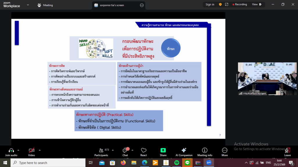 วันที่ 25 กุมภาพันธ์ 2569 นางสาวสิริรัตน์ หินอ่อน เกษตรอำเภอวิหารแดง รักษาราชการแทน เกษตรอำเภอพระพุทธบาท มอบหมายให้ นางสาวบัญจรัตน์ แสงสว่าง เจ้าพนักงานธุรการชำนาญงาน เข้าร่วมประชุมรับฟังความคิดเห็นเกี่ยวกับ”ร่างข้อเสนอการปรับปรุงการแบ่งส่วนราชการการแบ่งหน่วยงานภายใน อัตรากำลังของกรมส่งเสริมการเกษตร สมรรถนะเฉพาะตามลักษณะงานที่ปฏิบัติ และทักษะที่จำเป็นสำหรับการปฏิบัติงานในตำแหน่งของข้าราชการกรมส่งเสริมการเกษตร” ผ่านระบบ Zoom Workplace ณ สำนักงานเกษตรอำเภอพระพุทะบาท จังหวัดสระบุรี