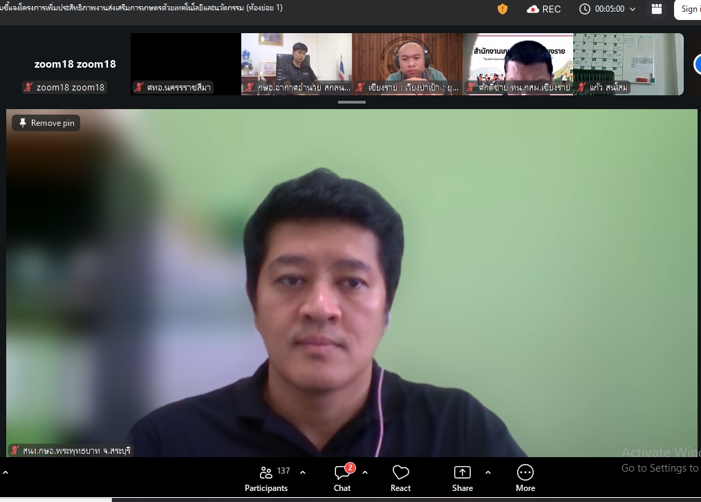 วันที่ 7 เมษายน 2569 นางสาวสิริรัตน์ หินอ่อน เกษตรอำเภอวิหารแดง รักษาราชการแทน เกษตรอำเภอพระพุทธบาท พร้อมด้วย เจ้าหน้าที่สำนักงานเกษตรอำเภอพระพุทธบาท ประชุมชี้แจงโครงการเพิ่มประสิทธิภาพงานส่งเสริมการเกษตรด้วยเทคโนโลยีและนวัตกรรม เพื่อพัฒนาเจ้าหน้าที่ให้มีศักยภาพในการจัดการงานส่งเสริมการเกษตรทั้งในมิติพื้นที่-คน-สินค้า สามารถนำเทคโนโลยีที่ดีและเหมาะสมมาใช้ในการเพื่อประสิทธิภาพในการทำงาน โดยประชุมผ่านระบบออนไลน์ (Zoom Meeting) ณ สำนักงานเกษตรอำเภอพระพุทธบาท จังหวัดสระบุรี