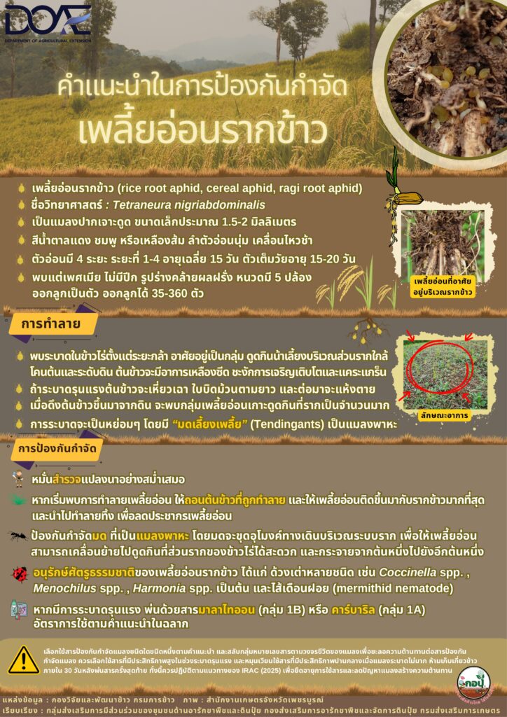 คำแนะนำในการป้องกันกำจัดเพลี้ยอ่อนรากข้าว