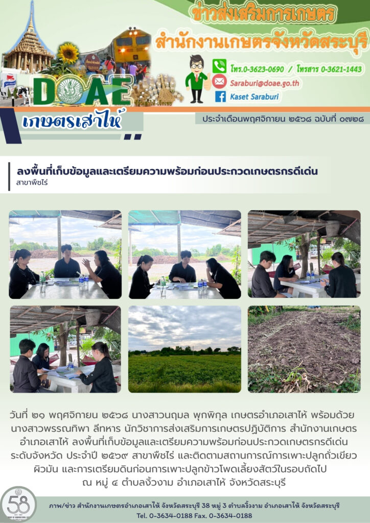 ลงพื้นที่เก็บข้อมูลและเตรียมความพร้อมก่อนประกวดเกษตรกรดีเด่นสาขาพืชไร่By สำนักงานเกษตรอำเภอเสาไห้ / 27/11/2025