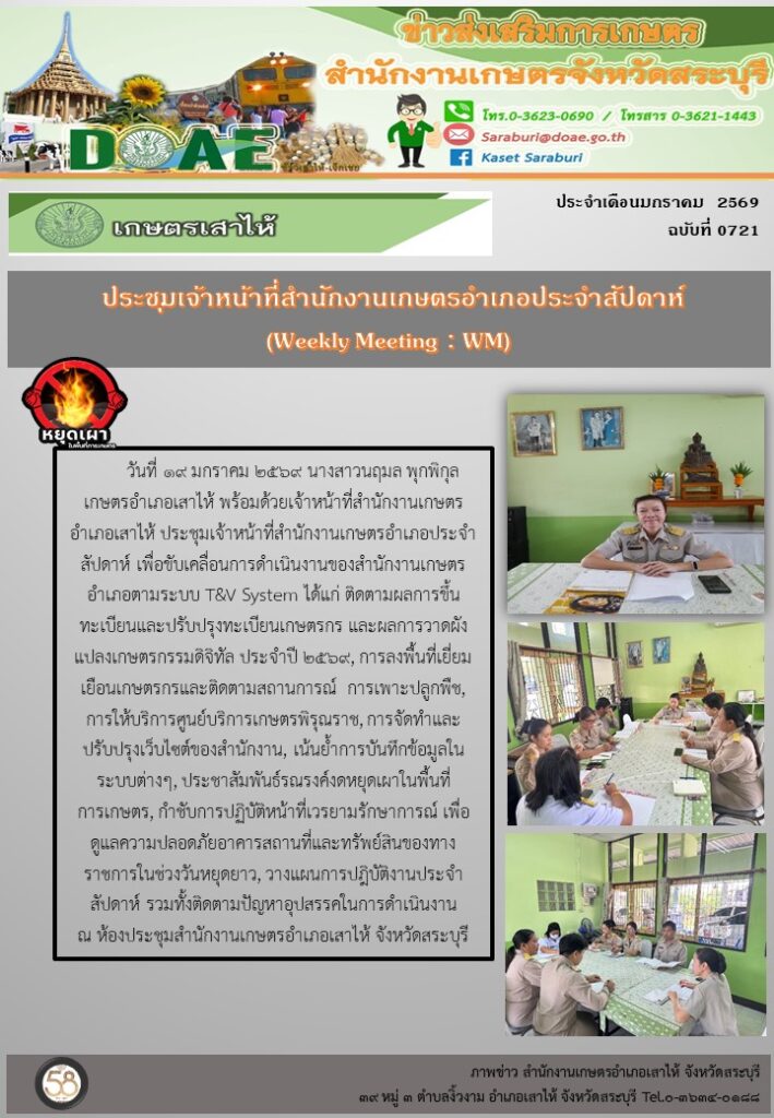 สำนักงานเกษตรอำเภอเสาไห้ ร่วมกิจกรรม “DOAE โปร่งใส หัวใจคุณธรรม ไม่ทนต่อการทุจริต”