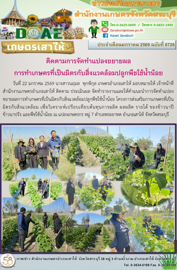ติดตามการจัดทำแปลงขยายผลการทำเกษตรที่เป็นมิตรกับสิ่งแวดล้อมปลูกพืชใช้น้ำน้อยBy สำนักงานเกษตรอำเภอเสาไห้ / 26/01/2026