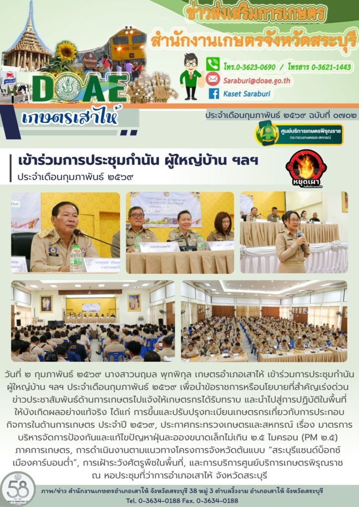 เข้าร่วมการประชุมกำนัน ผู้ใหญ่บ้าน ฯลฯ ประจำเดือนกุมภาพันธ์ 2569By สำนักงานเกษตรอำเภอเสาไห้ / 03/02/2026