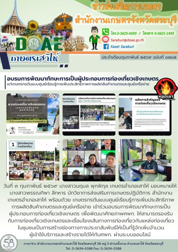 อบรมการพัฒนาทักษะการเป็นผู้ประกอบการท่องเที่ยวเชิงเกษตรแก่เกษตรกรต้นแบบศูนย์เรียนรู้การเพิ่มประสิทธิภาพการผลิตสินค้าเกษตรและศูนย์เครือข่ายBy สำนักงานเกษตรอำเภอเสาไห้ / 04/02/2026