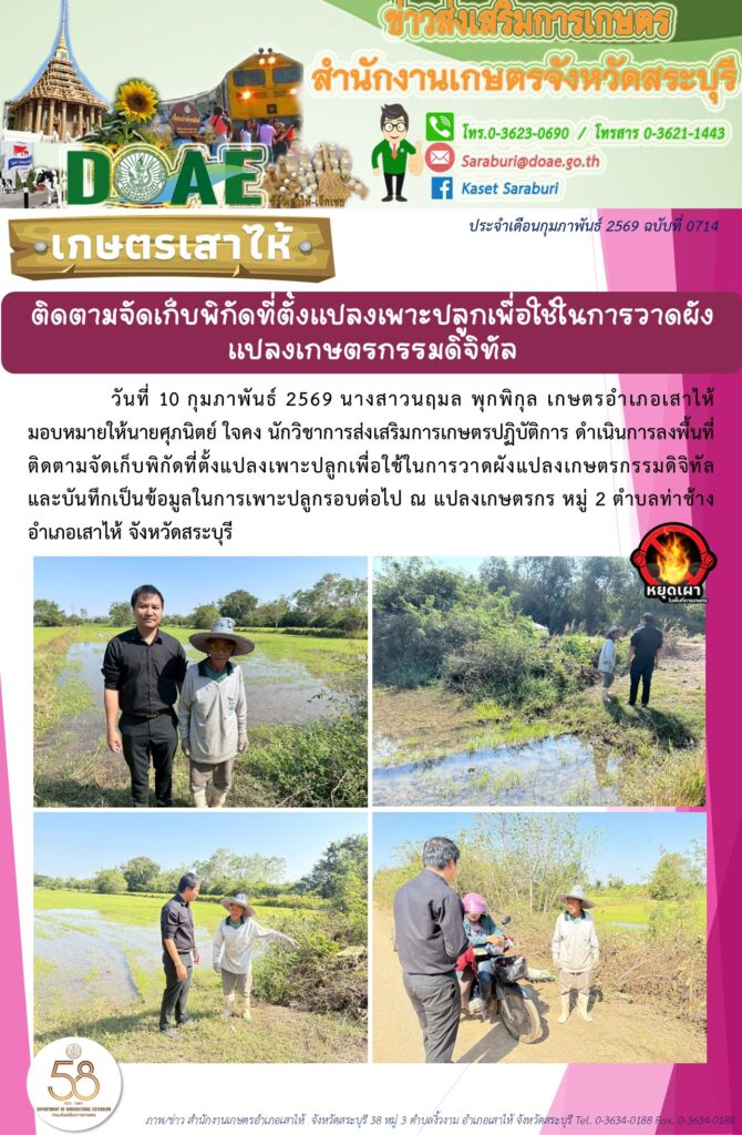 ติดตามจัดเก็บพิกัดที่ตั้งแปลงเพาะปลูกเพื่อใช้ในการวาดผังแปลงเกษตรกรรมดิจิทัลBy สำนักงานเกษตรอำเภอเสาไห้ / 11/02/2026
