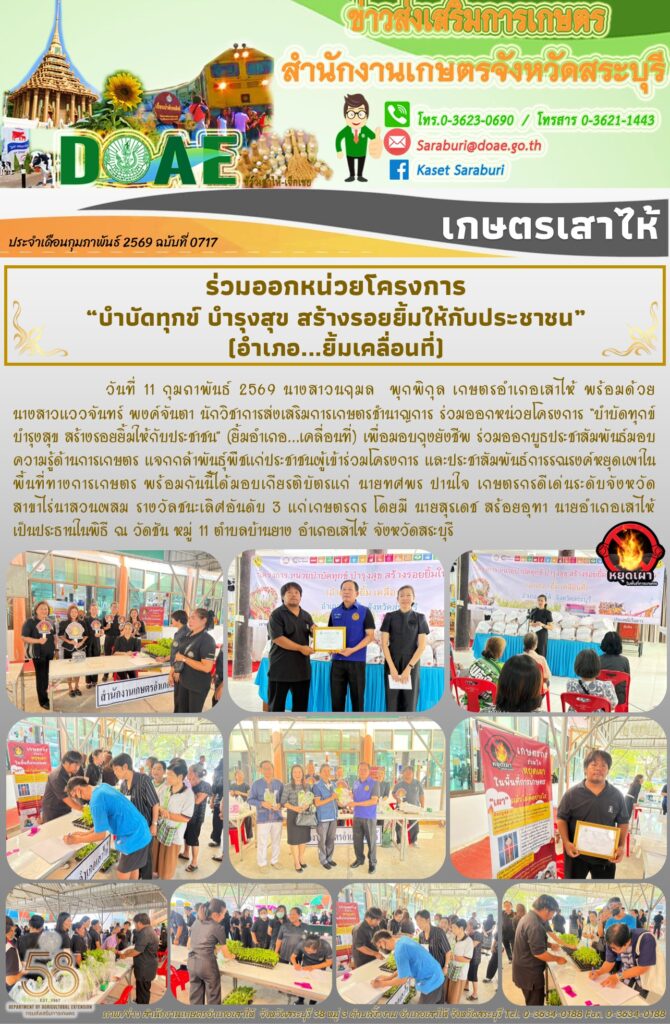 ร่วมออกหน่วยโครงการ“บำบัดทุกข์ บำรุงสุข สร้างรอยยิ้มให้กับประชาชน”(อำเภอ…ยิ้มเคลื่อนที่)By สำนักงานเกษตรอำเภอเสาไห้ / 11/02/2026