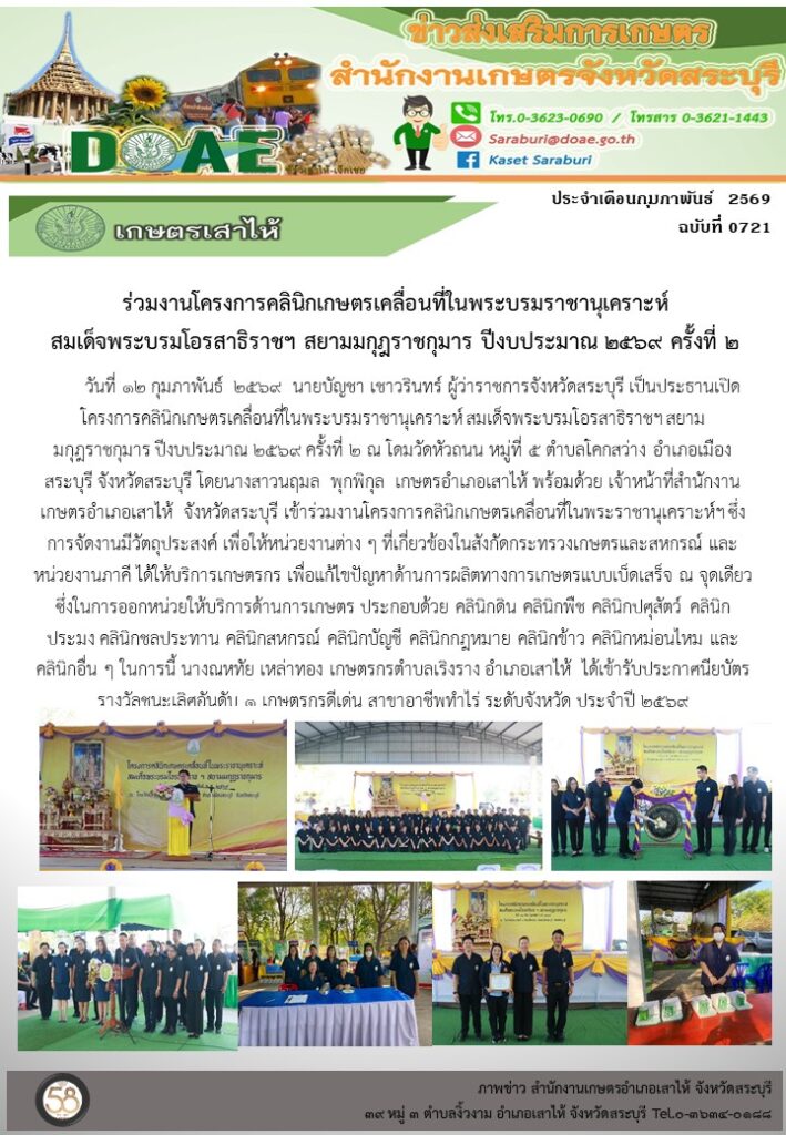ร่วมงานโครงการคลินิกเกษตรเคลื่อนที่ในพระบรมราชานุเคราะห์ สมเด็จพระบรมโอรสาธิราชฯ สยามมกุฎราชกุมาร ปีงบประมาณ 2569 ครั้งที่ 2By สำนักงานเกษตรอำเภอเสาไห้ / 12/02/2026