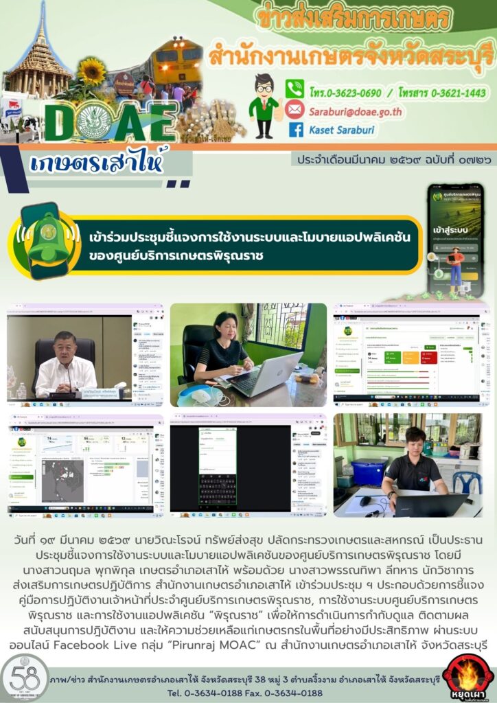 เข้าร่วมประชุมชี้แจงการใช้งานระบบและโมบายแอปพลิเคชันของศูนย์บริการเกษตรพิรุณราชBy สำนักงานเกษตรอำเภอเสาไห้ / 19/03/2026