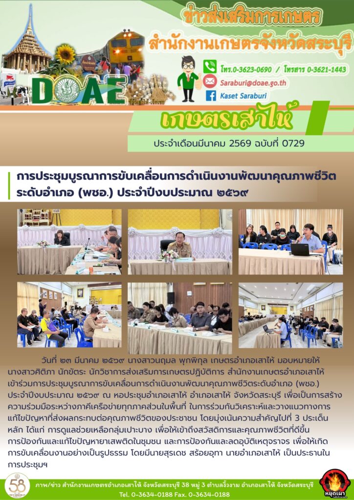 การประชุมบูรณาการขับเคลื่อนการดำเนินงานพัฒนาคุณภาพชีวิตระดับอำเภอ (พชอ.) ประจำปีงบประมาณ ๒๕๖๙By สำนักงานเกษตรอำเภอเสาไห้ / 23/03/2026