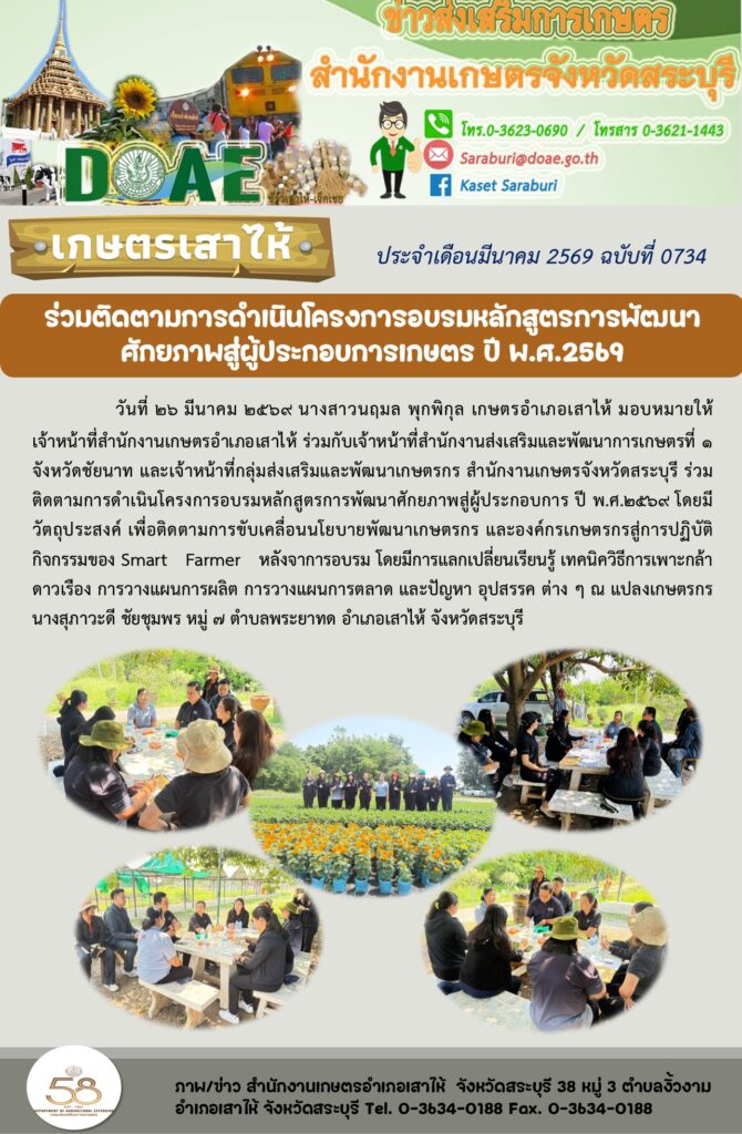 ร่วมติดตามการดำเนินโครงการอบรมหลักสูตรการพัฒนาศักยภาพสู่ผู้ประกอบการเกษตร ปี พ.ศ.2569By สำนักงานเกษตรอำเภอเสาไห้ / 26/03/2026