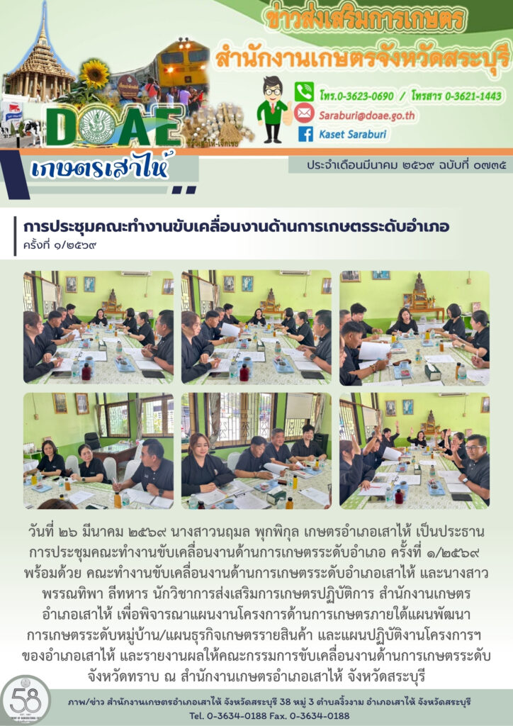 การประชุมคณะทำงานขับเคลื่อนงานด้านการเกษตรระดับอำเภอ ครั้งที่ ๑/๒๕๖๙By สำนักงานเกษตรอำเภอเสาไห้ / 26/03/2026