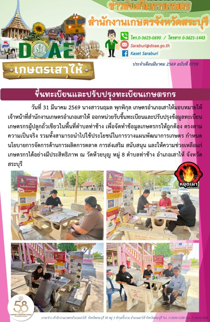 เยี่ยมเยียนเกษตรกรและติดตามสถานการณ์การเพาะปลูกพืชและติดตามโครงการส่งเสริมการเกษตรที่เป็นมิตรกับสิ่งแวดล้อม ปี ๒๕๖๙