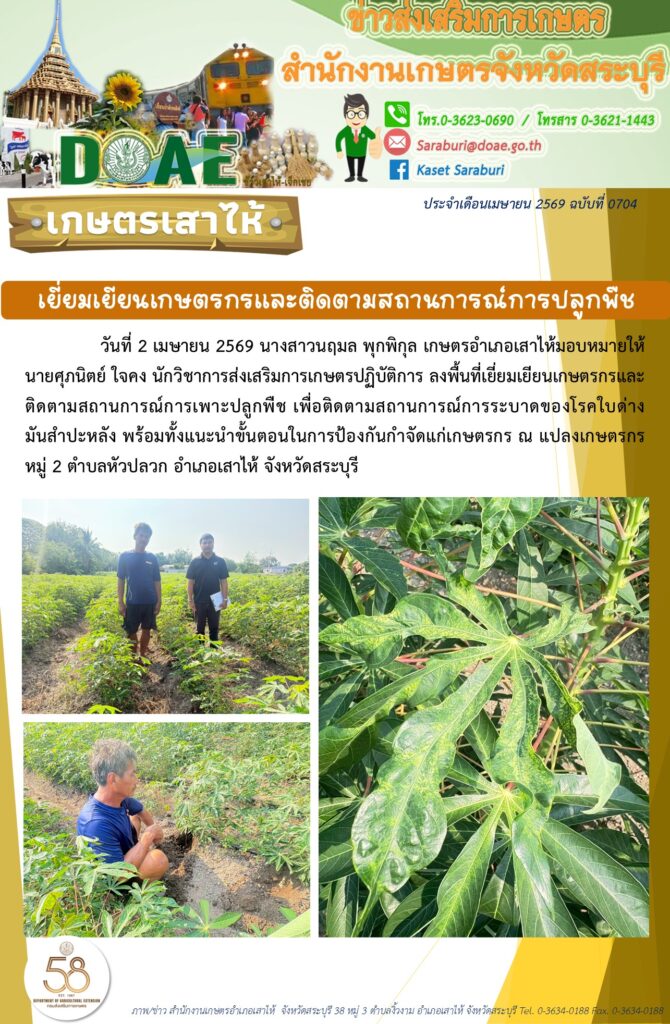เยี่ยมเยียนเกษตรกรและติดตามสถานการณ์การเพาะปลูกพืช ติดตามโครงการส่งเสริมการเกษตรที่เป็นมิตรกับสิ่งแวดล้อม ปี2569