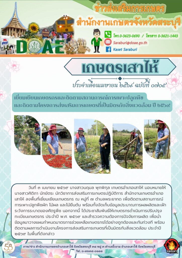 เยี่ยมเยียนเกษตรกรและติดตามสถานการณ์การเพาะปลูกพืช ติดตามโครงการส่งเสริมการเกษตรที่เป็นมิตรกับสิ่งแวดล้อม ปี2569By สำนักงานเกษตรอำเภอเสาไห้ / 04/04/2026