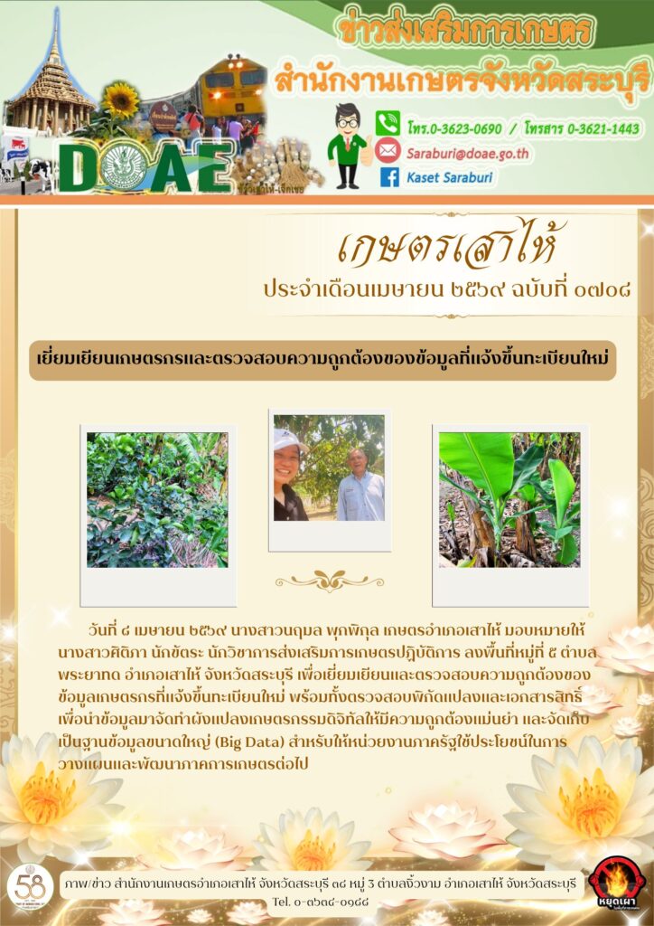 เยี่ยมเยียนและตรวจสอบความถูกต้องของข้อมูลเกษตรกรที่แจ้งขึ้นทะเบียนใหม่By สำนักงานเกษตรอำเภอเสาไห้ / 08/04/2026