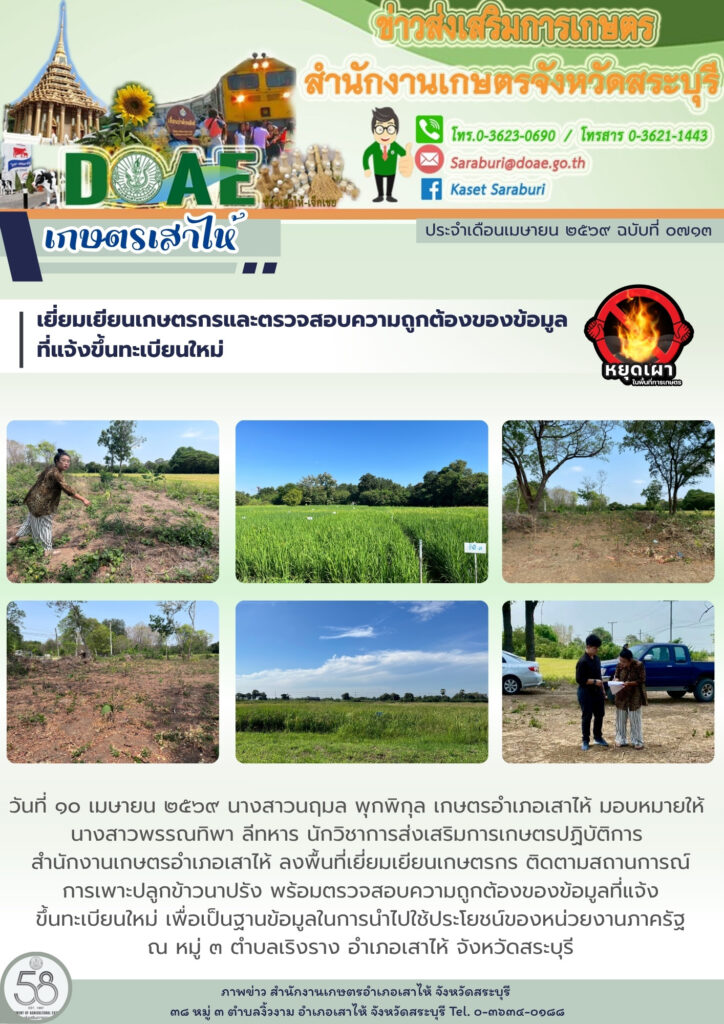 เยี่ยมเยียนเกษตรกรและตรวจสอบความถูกต้องของข้อมูลที่แจ้งขึ้นทะเบียนใหม่By สำนักงานเกษตรอำเภอเสาไห้ / 10/04/2026