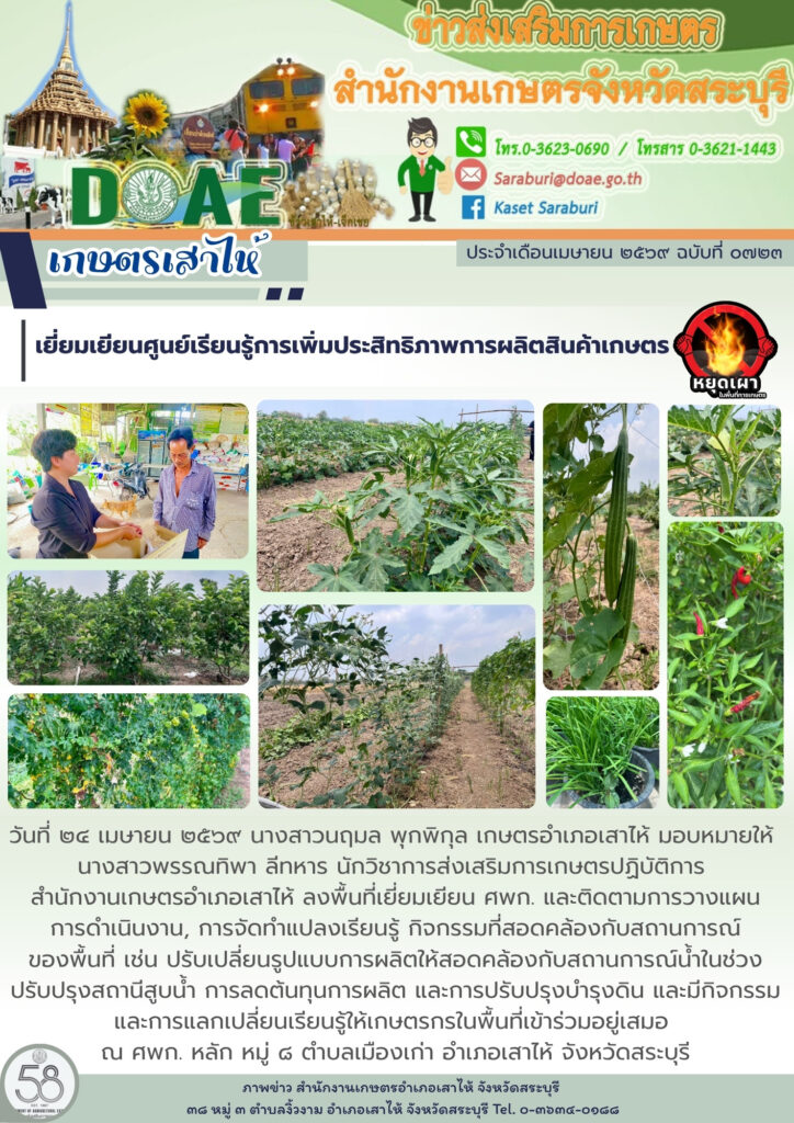 เยี่ยมเยียนศูนย์เรียนรู้การเพิ่มประสิทธิภาพการผลิตสินค้าเกษตรBy สำนักงานเกษตรอำเภอเสาไห้ / 24/04/2026