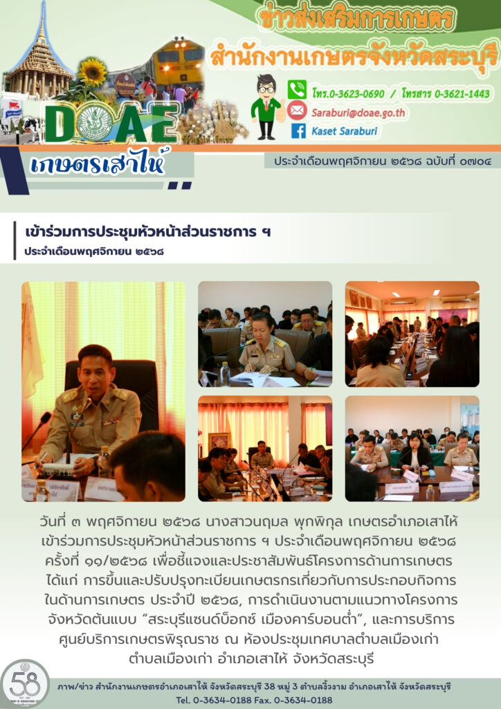 เข้าร่วมการประชุมหัวหน้าส่วนราชการ ฯ ประจำเดือนพฤศจิกายน 2568By สำนักงานเกษตรอำเภอเสาไห้ / 04/11/2025