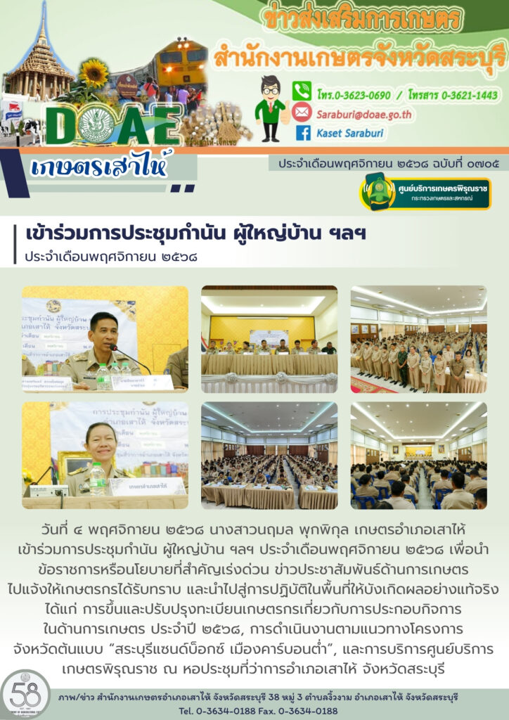 เข้าร่วมการประชุมกำนัน ผู้ใหญ่บ้าน ฯลฯ ประจำเดือนพฤศจิกายน 2568By สำนักงานเกษตรอำเภอเสาไห้ / 04/11/2025