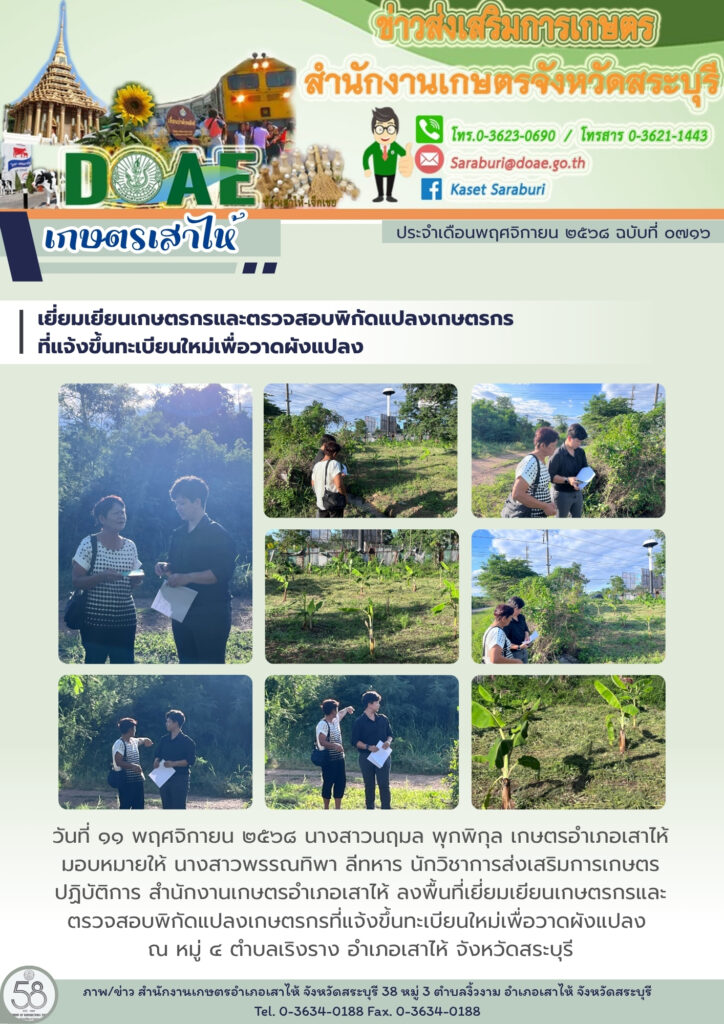 เยี่ยมเยียนเกษตรกรและตรวจสอบพิกัดแปลงเกษตรกรที่แจ้งขึ้นทะเบียนใหม่เพื่อวาดผังแปลงBy สำนักงานเกษตรอำเภอเสาไห้ / 11/11/2025