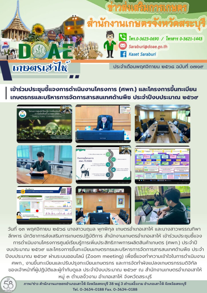 เข้าร่วมประชุมชี้แจงการดำเนินงานโครงการ (ศพก.) และโครงการขึ้นทะเบียนเกษตรกรและบริหารการจัดการสารสนเทศด้านพืช ประจำปีงบประมาณ 2569By สำนักงานเกษตรอำเภอเสาไห้ / 13/11/2025