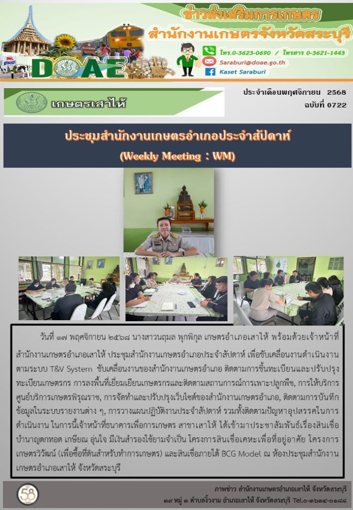 ประชุมสำนักงานเกษตรอำเภอประจำสัปดาห์ (WM) ตามระบบ ส่งเสริมการเกษตร (T&V System)By สำนักงานเกษตรอำเภอเสาไห้ / 17/11/2025
