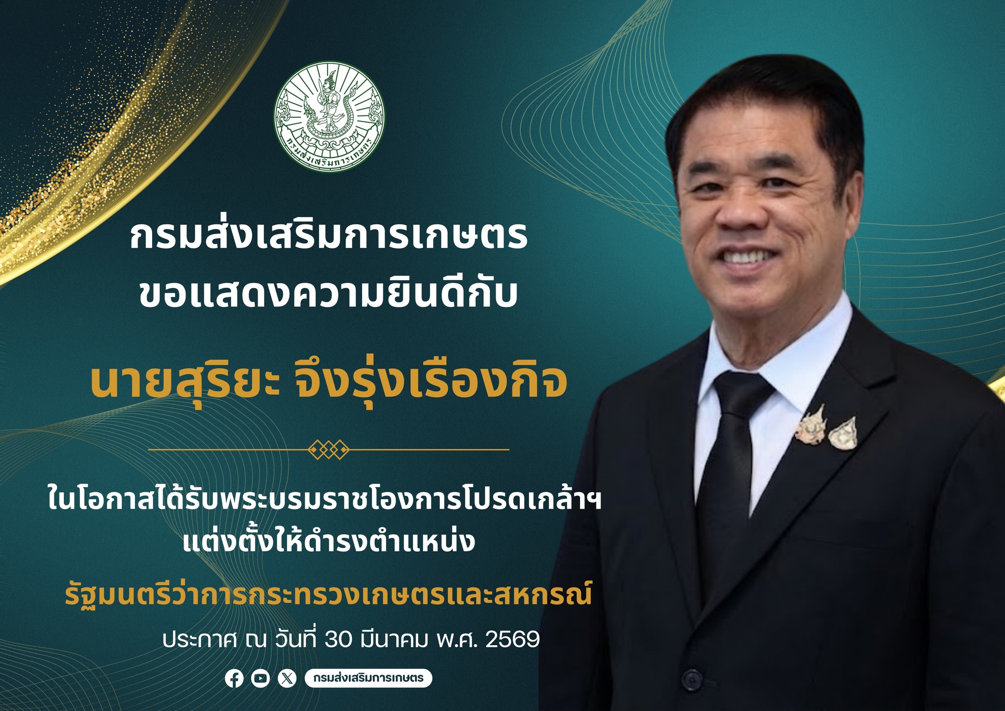 cropped-S__10928141.jpgสำรวจความพึงพอใจหน่วยงานภาครัฐ1775624554344659051783_1254151810179277_5232574556841789015_n661023751_1254151853512606_8802522834639375804_n657320745_1254151843512607_1279633229108061402_nbanner-website-เชิญชวนขึ้นทะเบียนเกษตรกร-01ฺBarner-ตลาดเกษตรกรBanner-ส่งพัสดุ ข่าวภารกิจเกษตรจังหวัดสระบุรีข่าวงานรัฐพิธี ศาสนพิธี และจิตอาสาข่าวส่งเสริมการเกษตรข่าวเตือนการระบาดข่าวประกาศ/คำสั่งข่าวจัดซื้อ/จัดจ้าง เกษตรจังหวัดสระบุรี : ร่วมพิธีเปิดงาน “เทศกาลมะม่วงมันหนองแซง” ประจำปี ๒๕๖๙เกษตรจังหวัดสระบุรี : ร่วมพิธีทอดผ้าป่าสมทบกองทุนพัฒนาเด็กชนบท ในพระราชูปถัมภ์สมเด็จพระเทพรัตนราชสุดาฯ สยามบรมราชกุมารี จังหวัดสระบุรี ประจำปี ๒๕๖๙เกษตรจังหวัดสระบุรี : จัดประชุมเกษตรอำเภอประจำเดือนมีนาคม ๒๕๖๙ ครั้งที่ ๖ ประจำปีงบประมาณ พ.ศ. ๒๕๖๙ร่วมงานรัฐพิธีวันที่ระลึกพระบาทสมเด็จพระนั่งเกล้าเจ้าอยู่หัวพระมหาเจษฎาราชเจ้า ประจำปี 2569เกษตรจังหวัดสระบุรี : เข้าร่วมประชุมผู้บริหารกรมส่งเสริมการเกษตร ครั้งที่ ๓/๒๕๖๙เกษตรจังหวัดสระบุรี : ร่วมการประชุมหารือการจัดงาน Field Day โครงการความร่วมมือระหว่างเยอรมัน – ไทยเกษตรจังหวัดสระบุรี : เข้าร่วมการประชุมคณะกรมการจังหวัด หัวหน้าส่วนราชการ และหัวหน้าหน่วยงานรัฐวิสาหกิจ ประจำจังหวัดสระบุรี ครั้งที่ ๓/๒๕๖๙เกษตรจังหวัดสระบุรี เข้าร่วมประชุมคณะกรรมการติดตามเร่งรัดการใช้จ่ายงบประมาณของกรมส่งเสริมการเกษตร ครั้งที่ 2/2569เกษตรจังหวัดสระบุรี : ร่วมตรวจประเมินผลงานศูนย์เรียนรู้โครงการอันเนื่องมาจากพระราชดำริต้นแบบระดับจังหวัด ประจำปีงบประมาณ พ.ศ. ๒๕๖๙เกษตรจังหวัดสระบุรี: ประชุมคณะอนุกรรมการอ้อยระดับท้องถิ่นเขต ๑๗ จังหวัดสระบุรี ครั้งที่ ๑/๒๕๖๙เกษตรจังหวัดสระบุรี : เข้าร่วมรับฟังรายละเอียดโครงการ 1 ตำบล 1 ดิจิทัล ซีซัน 3 (One Tambon One Digital: OTOD #3)เกษตรจังหวัดสระบุรี : ออกให้บริการโครงการ “หน่วยบำบัดทุกข์ บำรุงสุข สร้างรอยยิ้มให้ประชาชน” จังหวัดสระบุรีเกษตรจังหวัดสระบุรี : ร่วมต้อนรับและนำเสนอข้อมูลด้านการเกษตรในพื้นที่ให้กับนายเข้มแข็ง ยุติธรรมดำรง รองเลขาธิการมูลนิธิชัยพัฒนาในการตรวจเยี่ยมติดตามร่วมพีธีเวียนเทียน เนื่องในวันสำคัญทางศาสนา (วันมาฆบูชา) ประจำปี 2569เข้าร่วมพิธีถวายราชสักการะแด่พระบาทสมเด็จพระบรมชนกาธิเบศร มหาภูมิพลอดุลยเดชมหาราช บรมนาถบพิตร “พระบิดาแห่งมาตรฐานการช่างไทย” ประจำปี 2569เกษตรจังหวัดสระบุรี : จัดการประชุมเกษตรอำเภอ ประจำเดือนกุมภาพันธ์ ๒๕๖๙ ครั้งที่ ๕ ประจำปีงบประมาณ พ.ศ. 2569 ร่วมงานพิธีเจริญพระพุทธมนต์ และพิธีทำบุญตักบาตรถวายพระราชกุศล เนื่องในวันคล้ายวันพระราชสมภพ สมเด