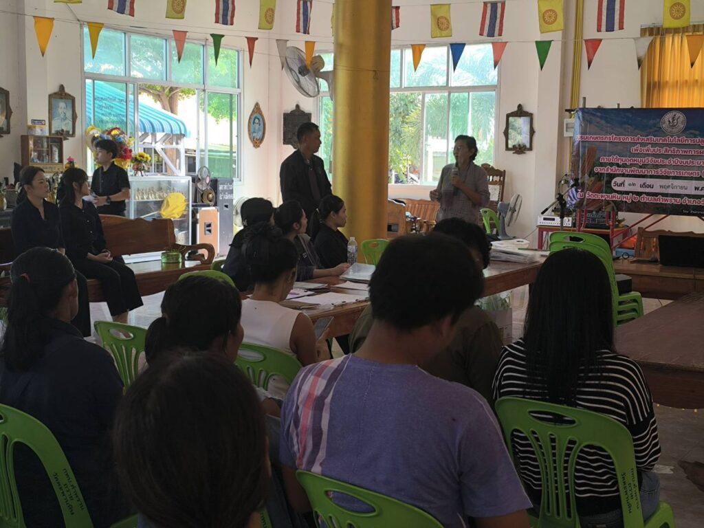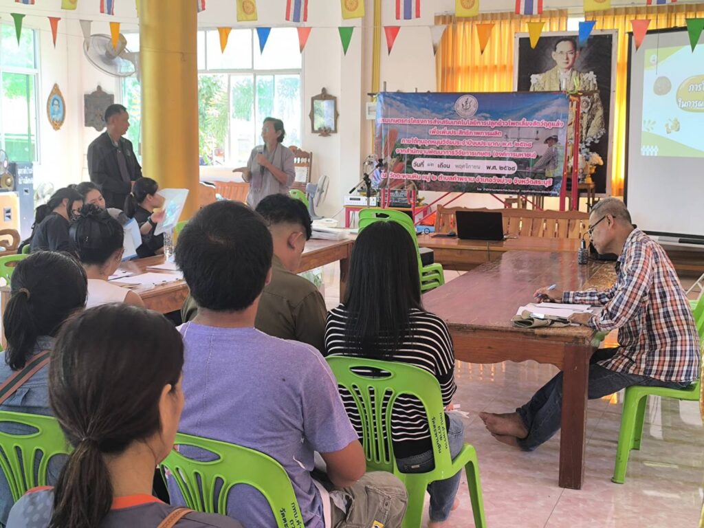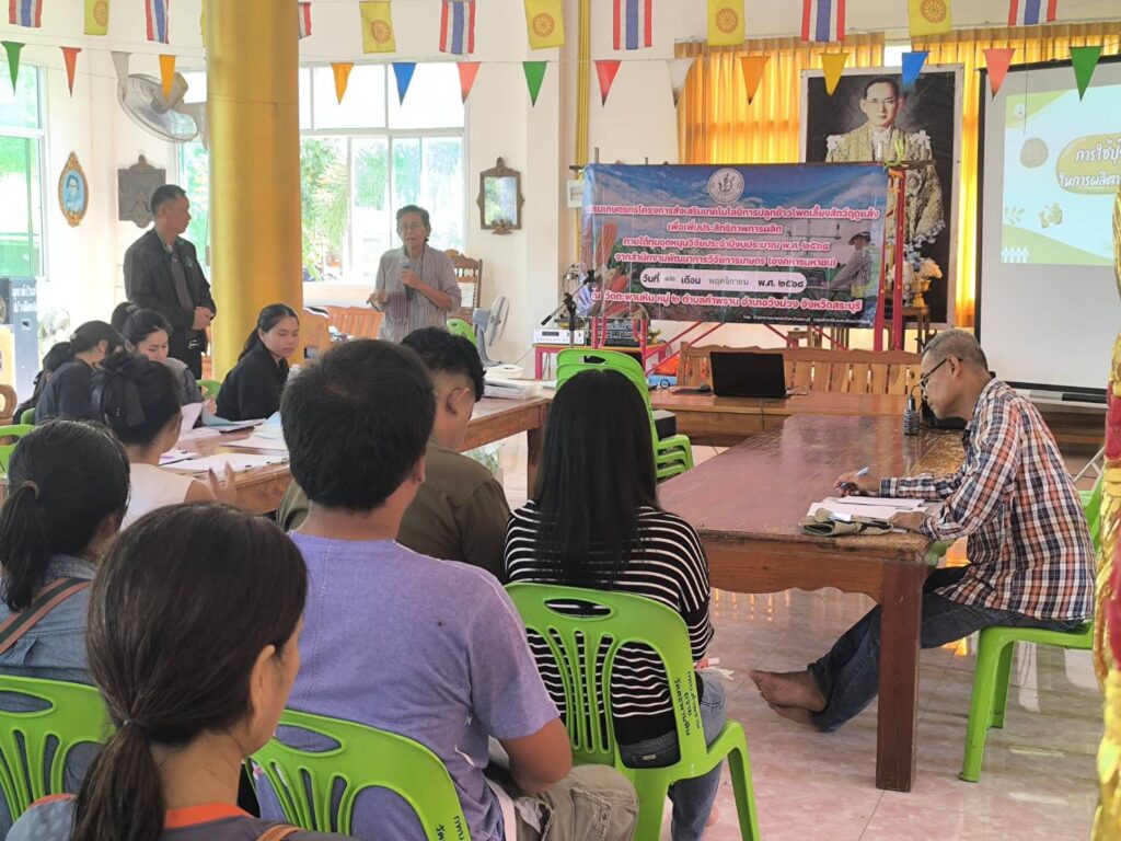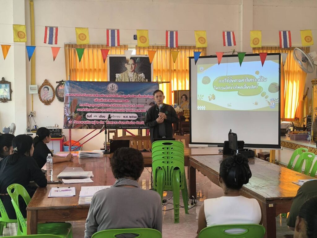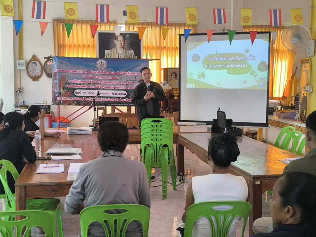 วันที่ 12 พฤศจิกายน 2568 นายปรีชา สายแสง เกษตรจังหวัดสระบุรี พร้อมด้วยนางสาวสุทิน หิรัญอ่อน หัวหน้ากลุ่มส่งเสริมและพัฒนาการผลิต สำนักงานเกษตรจังหวัดสระบุรี ร่วมด้วยเจ้าหน้าที่กลุ่มส่งเสริมและพัฒนาการผลิต จัดอบรมโครงการส่งเสริมเทคโนโลยีการปลูกข้าวโพดเลี้ยงสัตว์ฤดูแล้งเพื่อเพิ่มประสิทธิภาพการผลิต โดยนางสาวจิตรลดา แก้วคำ เกษตรอำเภอวังม่วง และนางภัคจิรา แป้นแก้ว นักวิชาการส่งเสริมการเกษตรปฏิบัติการ เข้าร่วมการอบรมดังกล่าว เพื่อส่งเสริมและขยายผลให้เกษตรกรได้เข้าถึงเทคโนโลยีเกี่ยวกับการปลูกข้าวโพดเลี้ยงสัตว์ของหน่วยงานต่าง ๆ อย่างถูกต้องและเหมาะสม ทั้งนี้มีเกษตรกรจำนวน 25 ราย เข้าอบรมร่วมกันณ วัดตะพานหิน หมู่ 2 ตำบลคำพราน อำเภอวังม่วง จังหวัดสระบุรี