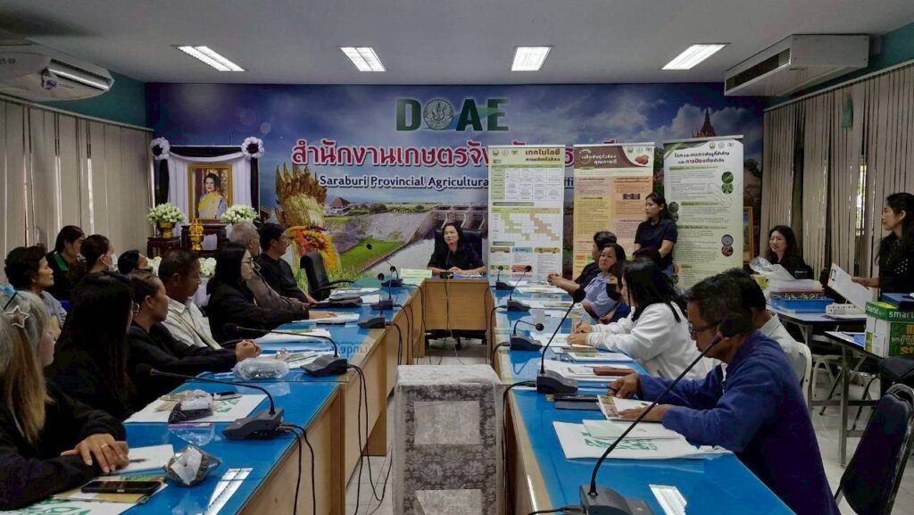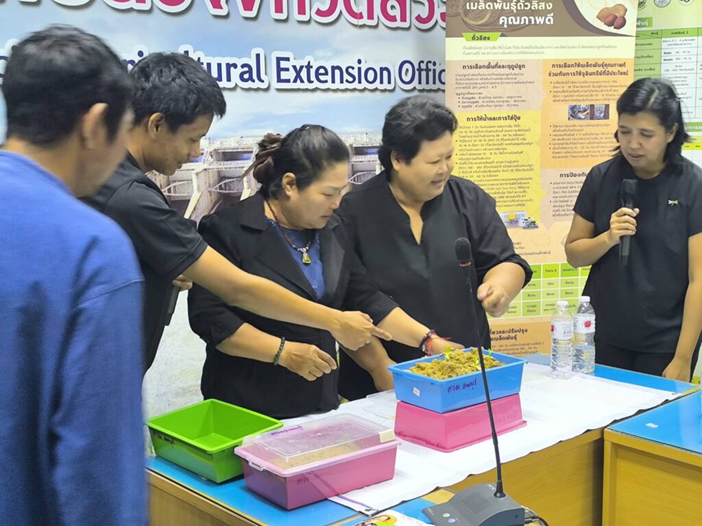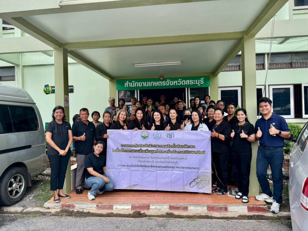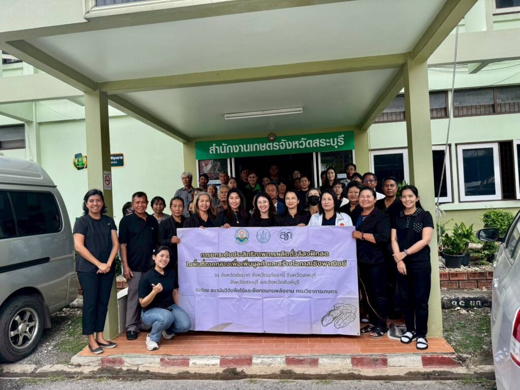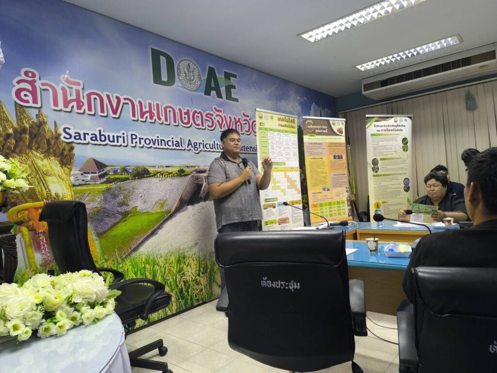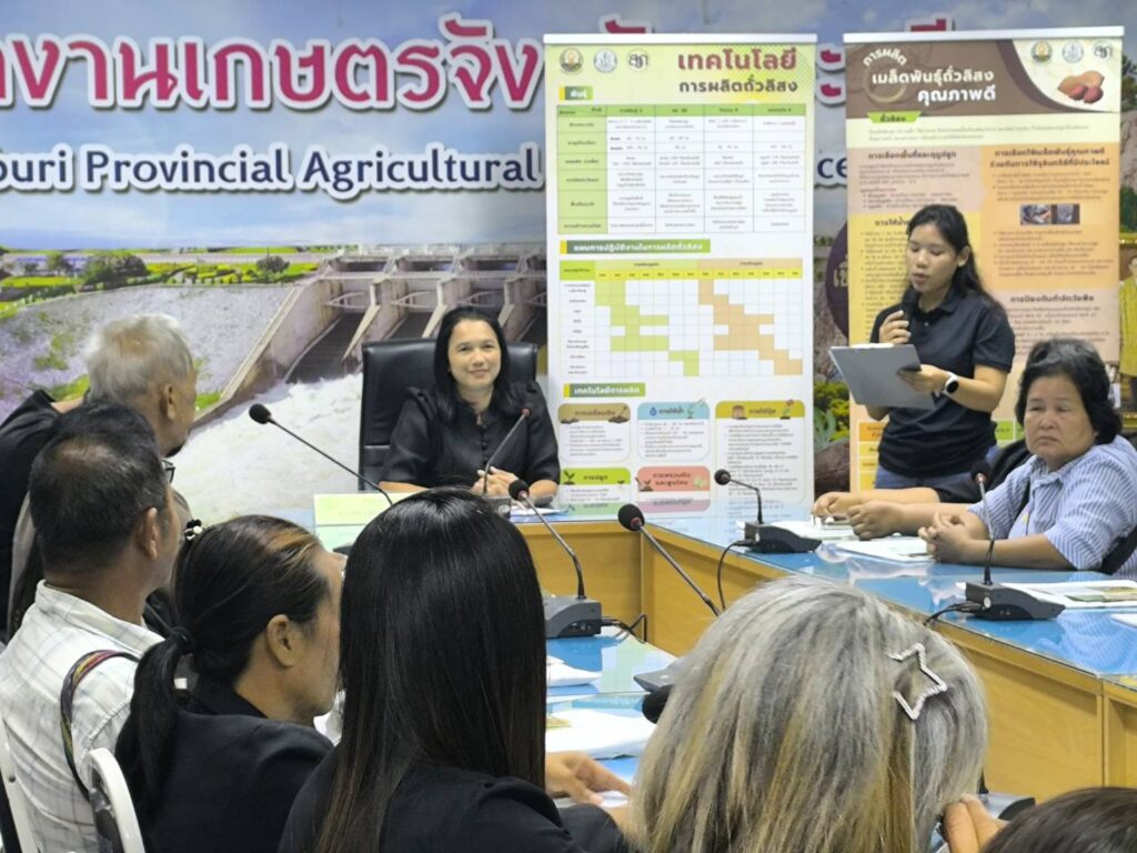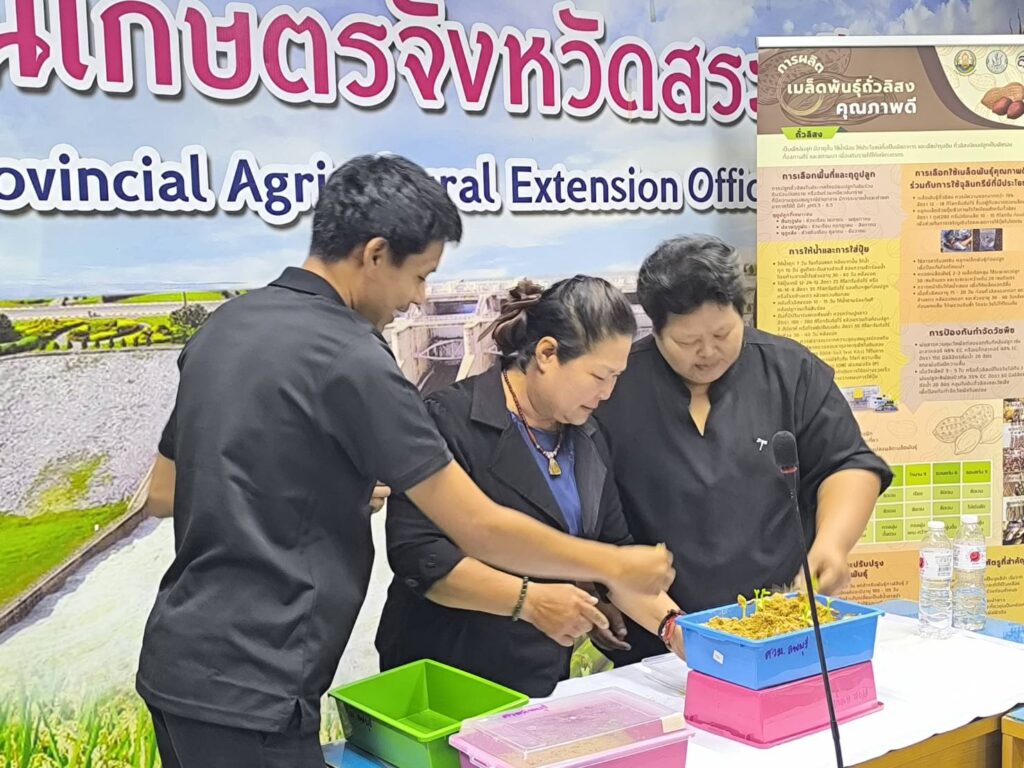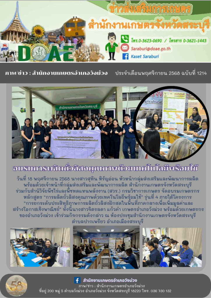 วันที่ 18 พฤศจิกายน 2568 นางสาวสุทิน หิรัญอ่อน หัวหน้ากลุ่มส่งเสริมและพัฒนาการผลิต พร้อมด้วยเจ้าหน้าที่กลุ่มส่งเสริมและพัฒนาการผลิต สำนักงานเกษตรจังหวัดสระบุรี ร่วมกับสำนัวิจัยพืชไร่และพืชทดแทนพลังงาน (สวร.) กรมวิชาการเกษตร จัดอบรมเกษตรกร หลักสูตร “การผลิตถั่วลิสงคุณภาพด้วยเทคโนโลยีพร้อมใช้” รุ่นที่ 4 ภายใต้โครงการ “การยกระดับประสิทธิภาพการผลิตถั่วลิสงฝักสดในพื้นที่ภาคกลางเพื่อเพิ่มมูลค่าและสร้างโอกาสเชิงพาณิชย์” ทั้งนี้นางสาวจิตรลดา แก้วคำ เกษตรอำเภอวังม่วง พร้อมด้วยเกษตรกรของอำเภอวังม่วง เข้าร่วมกิจกรรมดังกล่าว ณ ห้องประชุมสำนักงานเกษตรจังหวัดสระบุรี ตำบลปากเพรียว อำเภอเมืองสระบุรี