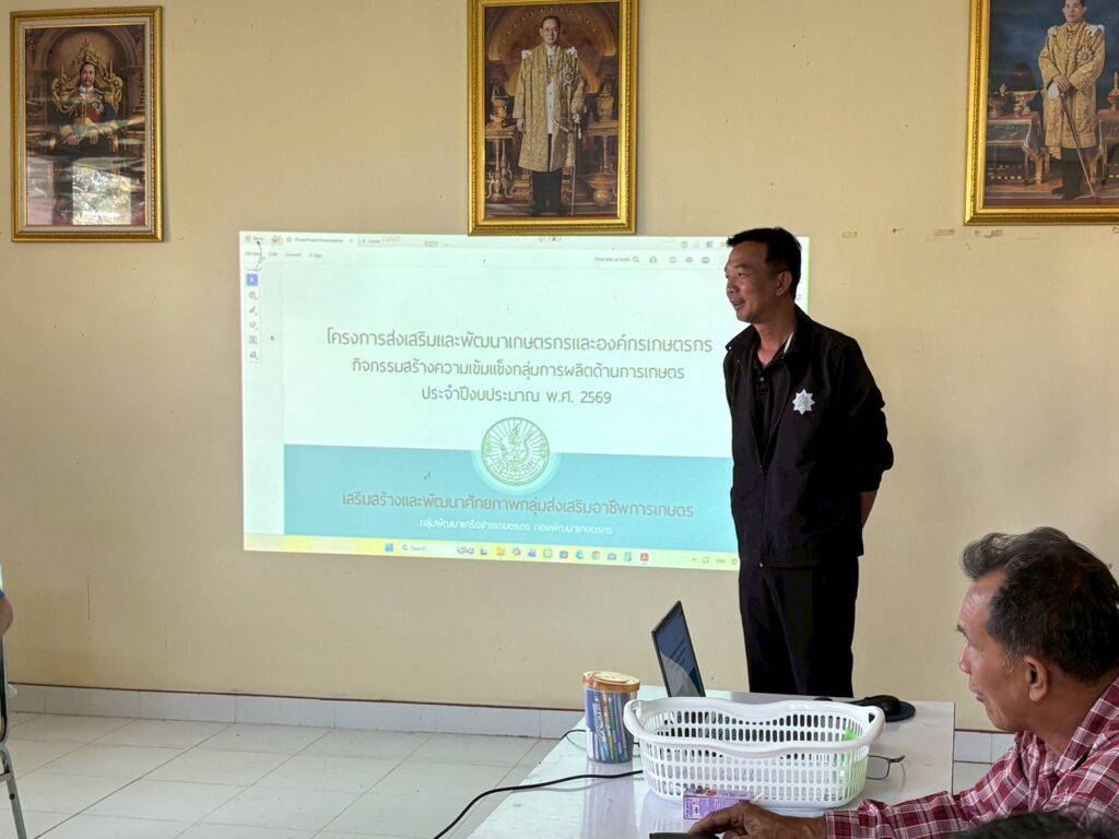 วันที่ 15 มกราคม 2569 นายบัณฑิต ผลวาวแวว นักวิชาการส่งเสริมการเกษตรชำนาญการ รักษาราชการแทนเกษตรอำเภอวิหารแดง พร้อมด้วยนางสาวฑิฆัมพร ศรีบูรณะ นักวิชาการส่งเสริมการเกษตรปฏิบัติการ จัดกระบวนการถ่ายทอดความรู้และฝึกปฏิบัติเพื่อพัฒนาศักยภาพกลุ่มส่งเสริมอาชีพการเกษตรสู่ Smart Group (วันที่ 1 ) ตามโครงการส่งเสริมและพัฒนาเกษตรกรและองค์กร โดยมีวัตถุประสงค์เพื่อเสริมสร้างและพัฒนาองค์กรเกษตรกร ให้มีความเข้มแข็ง มีความสามารถในการบริหารจัดการกลุ่มเพิ่มขึ้น สามารถพึ่งพาตนเองได้ มีทักษะการเป็นผู้ประกอบการด้านการเกษตรเบื้องต้น สร้างรายได้และลดรายจ่ายให้ครัวเรือนและชุมชน ละประชาสัมพันธ์ประกาศสร้างการรับรู้ ประกาศกระทรวงเกษตรและสหกรณ์ เรื่อง มาตรการบริหารจัดการป้องกันและแก้ไขปัญหาฝุ่นละอองขนาดเล็ก ไม่เกิน 2.5 ไมครอน (PM2.5)ภาคการเกษตร ณ ที่ทำการศูนย์ส่งเสริมและผลิตเมล็ดพันธุ์ข้าวชุมชนตำบลหนองสรวง หมู่ 6 ตำบลหนองสรวง อำเภอวิหารแดง จังหวัดสระบุรี