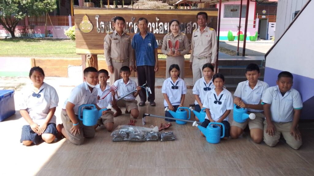 วันที่ 2 มีนาคม 2569 นายบัณฑิต ผลวาวแวว นักวิชาการส่งเสริมการเกษตรชำนาญการ รักษาราชการแทนเกษตรอำเภอวิหารแดง พร้อมด้วยนายอนุวัฒน์ คงสว่าง นักวิชาการส่งเสริมการเกษตรชำนาญการ และนายสุทัศน์ หมวกไสว ประธานศูนย์เรียนรู้การเพิ่มประสิทธิภาพการผลิตสินค้าเกษตร เป็นตัวแทนมอบวัสดุอุปกรณ์การเกษตร เช่น พันธุ์กบ อาหารกบ จอบ เสียบ บัวรดน้ำ มอบให้โรงเรียนวัดเขาน้อยจอมสวรรค์ ตำบลเจริญธรรม อำเภอวิหารแดง จังหวัดสระบุรี เพื่อใช้ดำเนินกิจกรรมยุวเกษตรกรในโรงเรียน ซึ่งเป็นเงินรายได้หลังจากหักค่าใช้จ่ายจากการร่วมกิจกรรมการแข่งขันกีฬาฟุตบอลการกุศลสหกรณ์คัพ ครั้งที่ 6 ณ สนามกีฬาโรงเรียนวัดสหกรณ์รังสรรค์ ตำบลหนองสรวง อำเภอวิหารแดง จังหวัดสระบุรี เมื่อวันที่ 1 มีนาคม 2569 ที่ผ่านมา